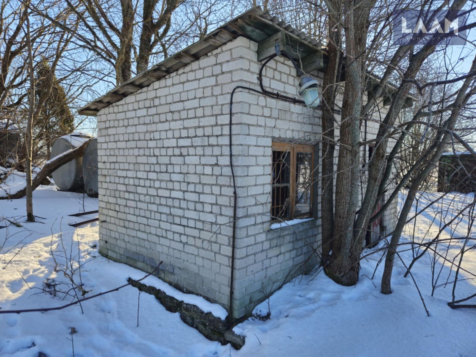 Kinnistul on muu tööstushoone(ladu), ehitusalane pind 15 m², suletud netopind 11,1 m². Madalvundament, tellis(sein), eterniit(katus).