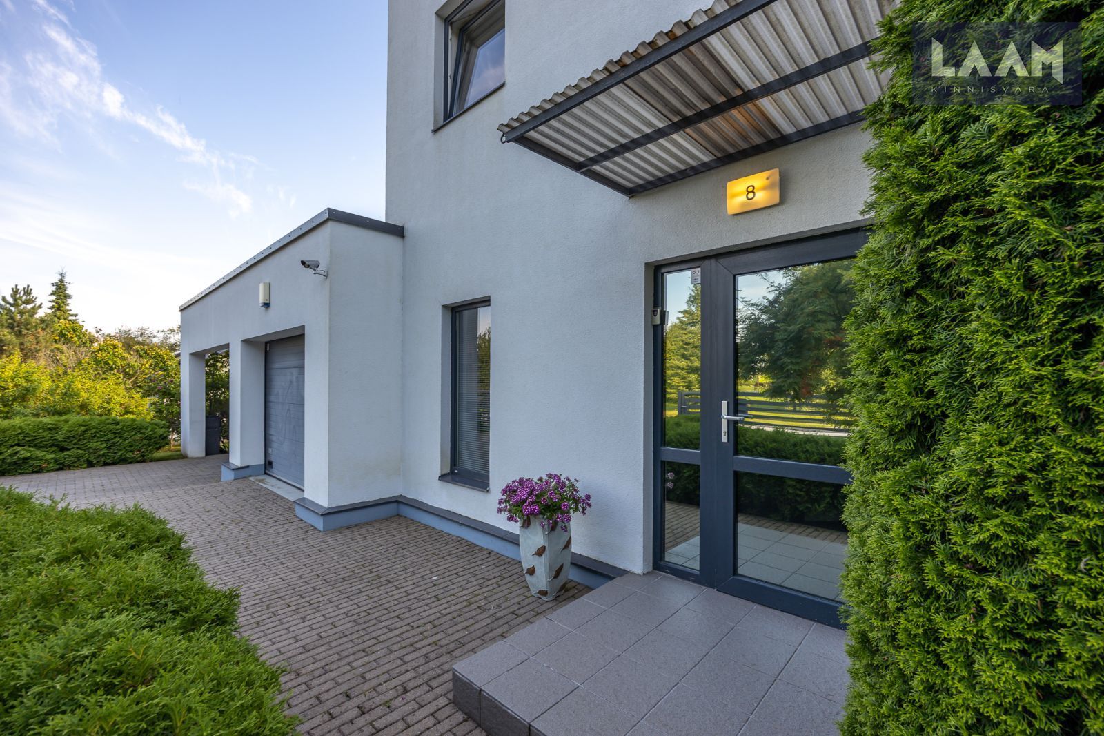 Aial on võtmega avatav jalgvärav ning kaugjuhtimise võimalusega autovärav. Autosid saab parkida kahte autot mahutavas varjualuses või majaesisel unikividest sillutisel.