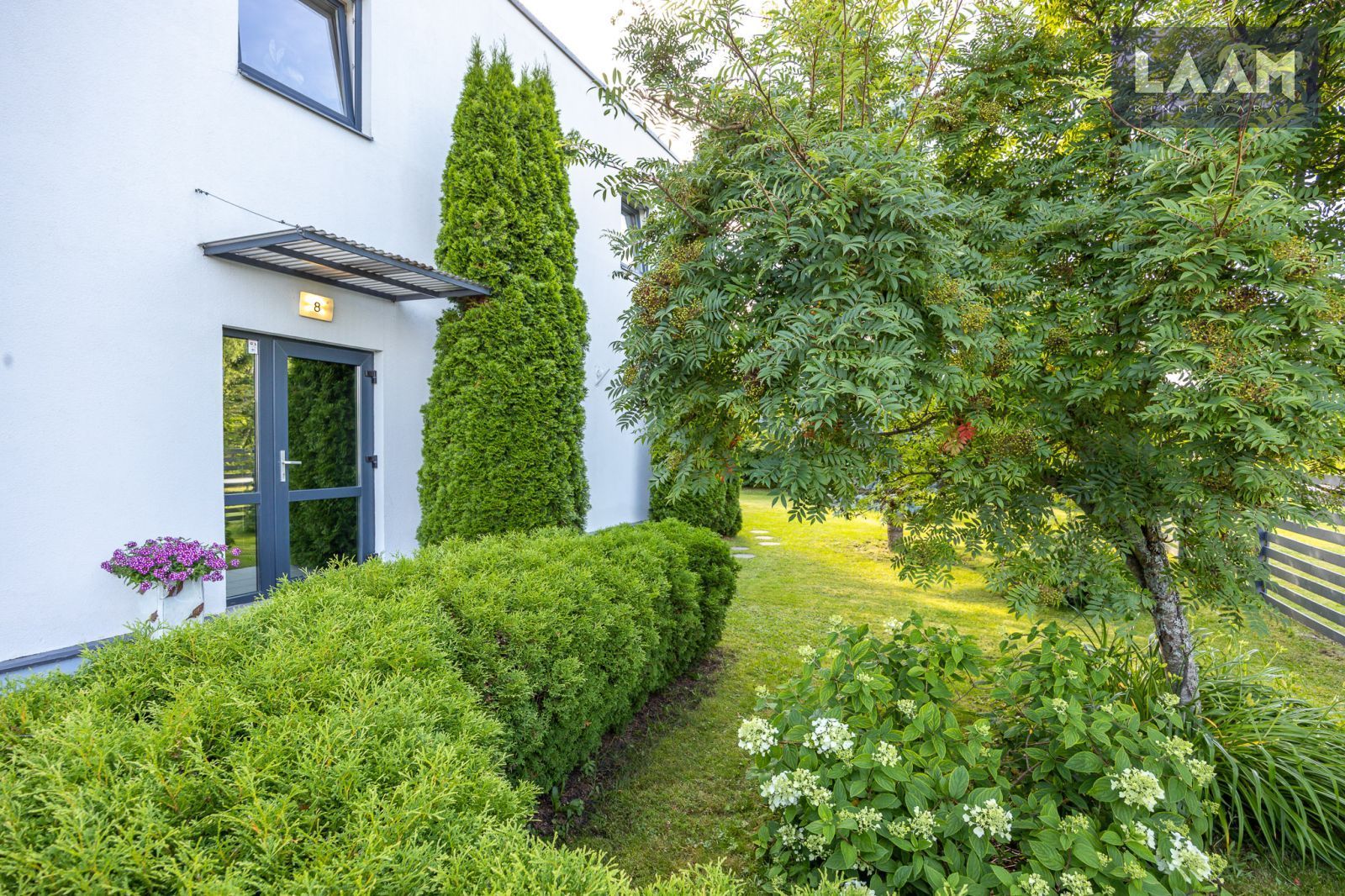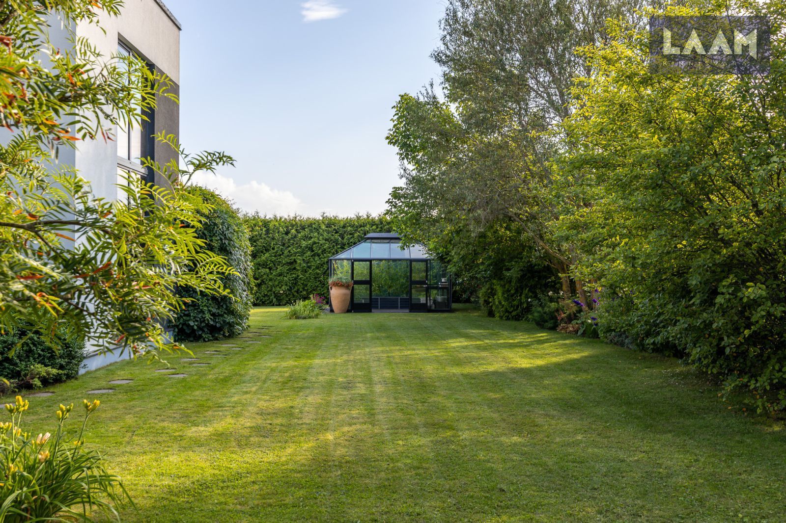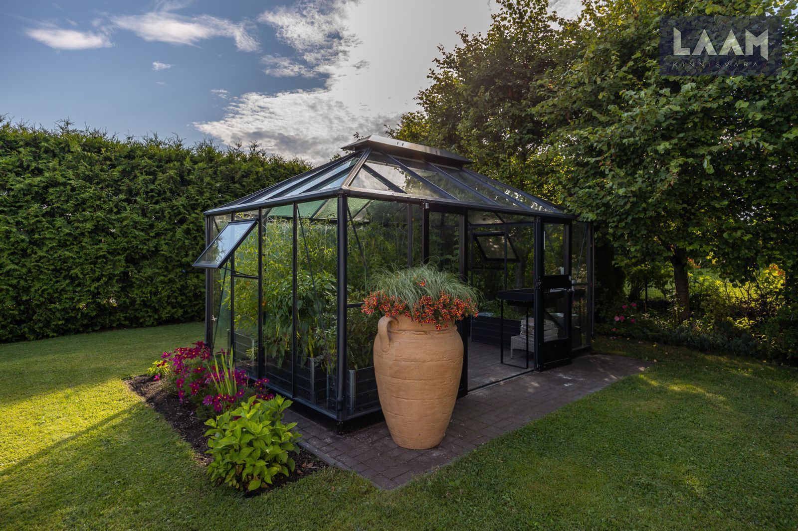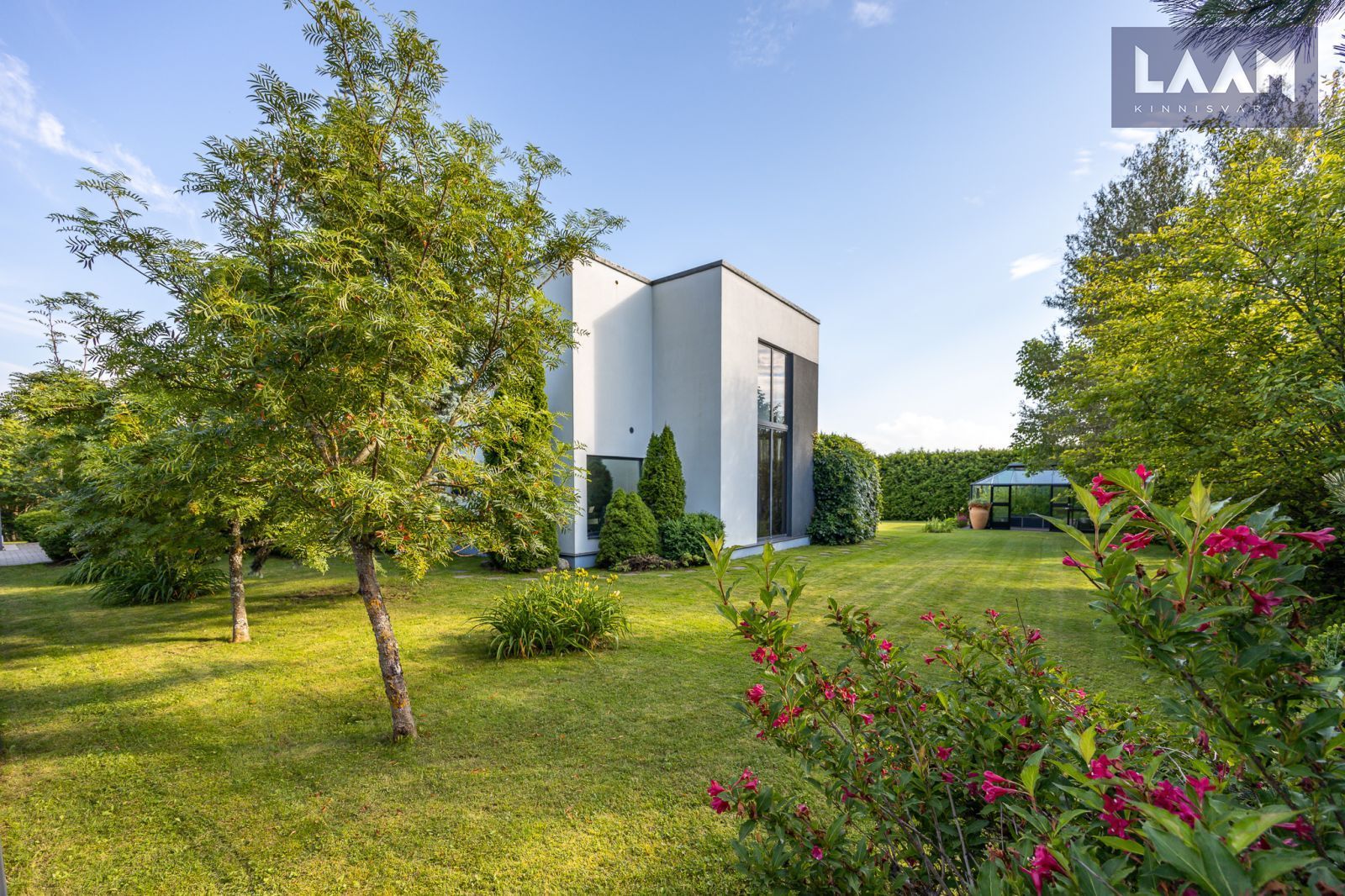 Tegemist on kõrghaljastusega krundiga, mis on piiratud erinevat tüüpi hekkide ja aiaga. Kasvavad viljapuud ja põõsad. Aias on ka 13 m2 suurune moodne Juliana Pavilion Grand Oasis kasvuhoone, mis sobib hästi ka talveaiaks. Maja küljes asub elupuuhekiga piiratud 47 m2 terrass koos aiamööbli ja suure grilliga.