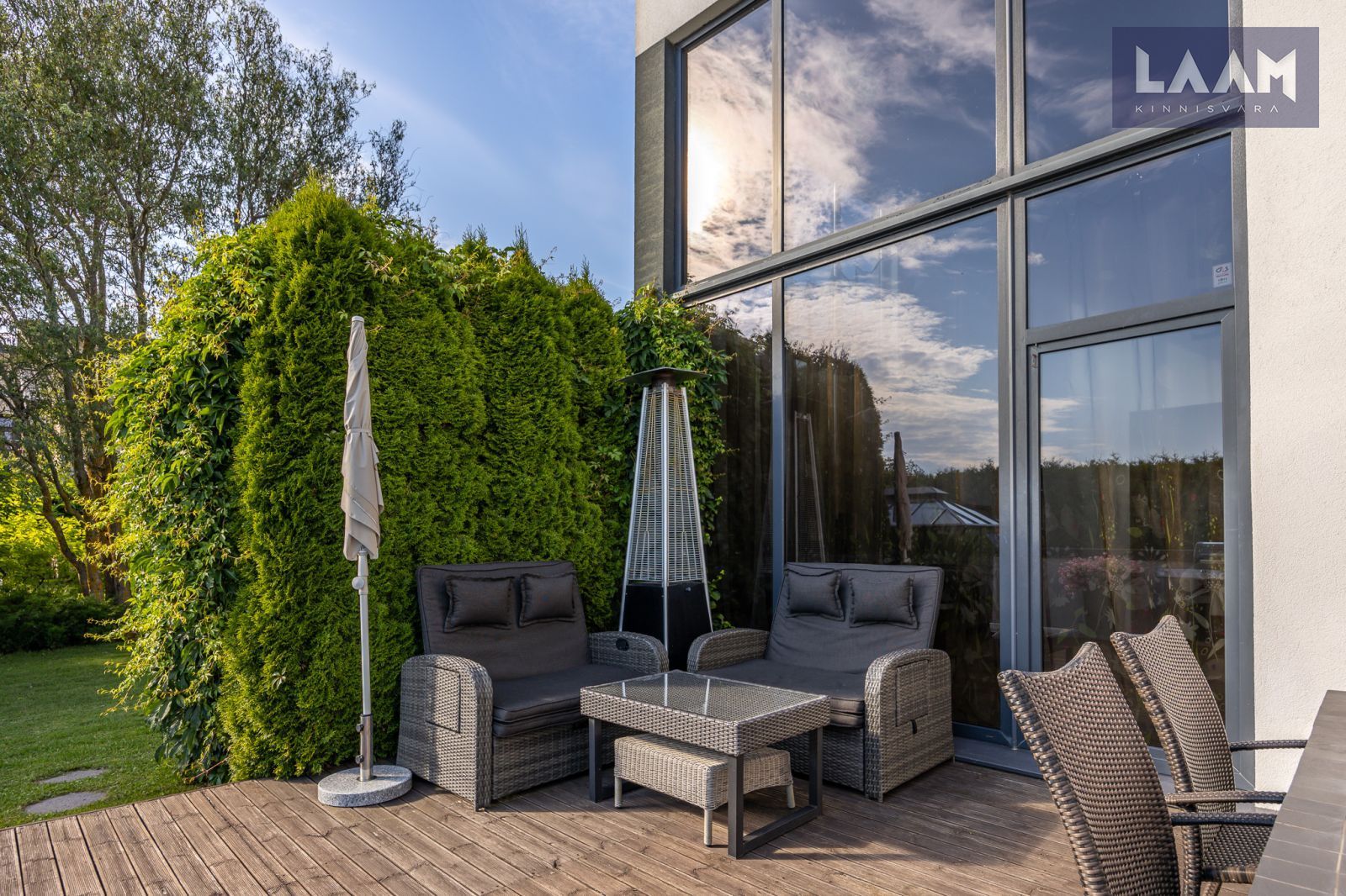 Kogu nähtav tervik toetab seda – müügihinna sisse kuuluvad mööbel, kodu- ja aiatehnika, jõutrenažöör ning muu sisustus, et saaksid sisse astuda ja kohe elama hakata.