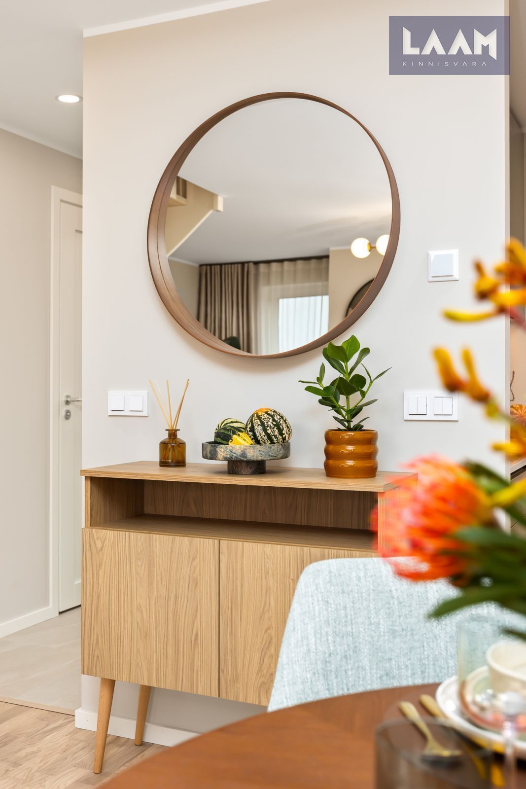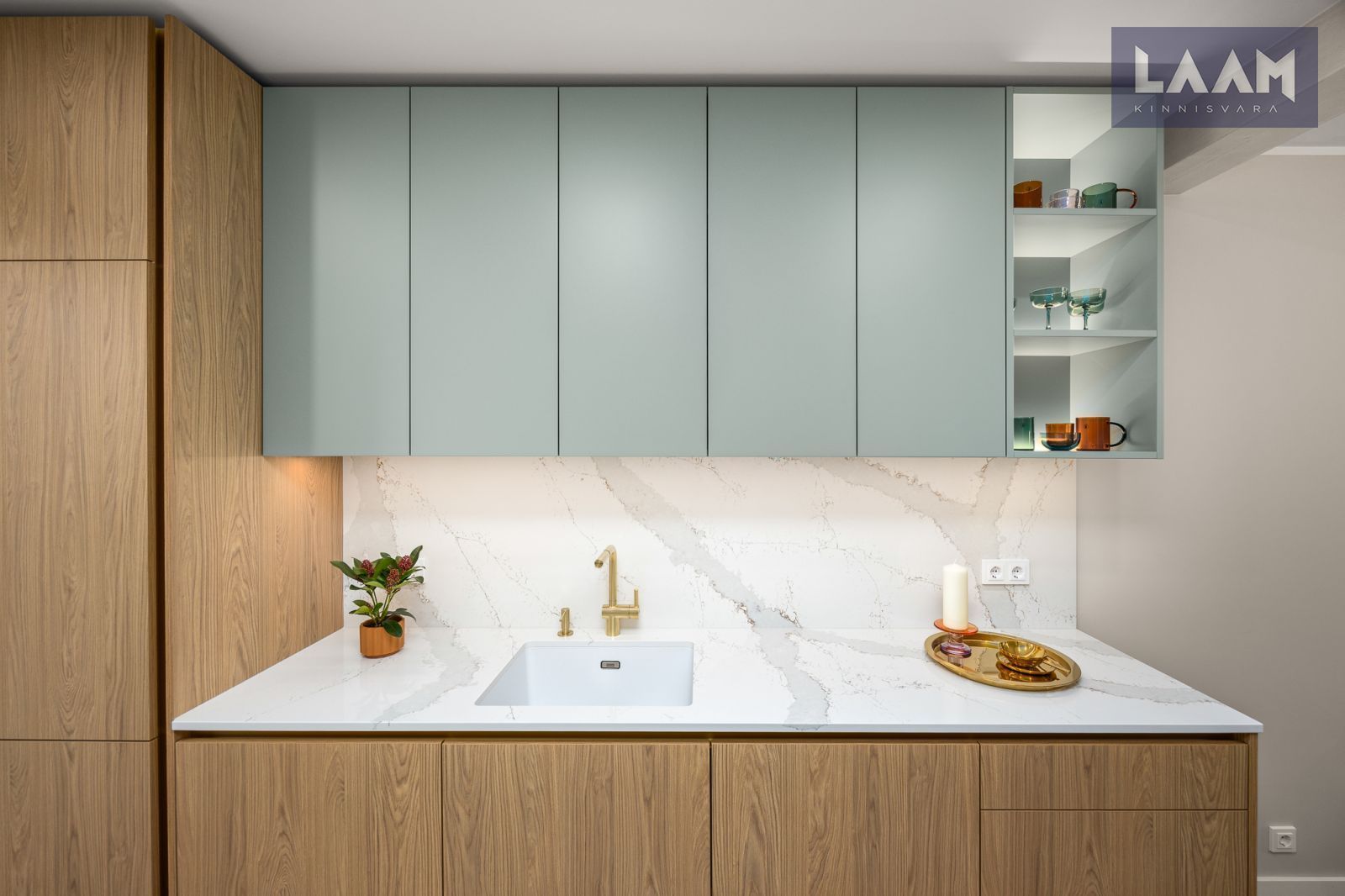 •Siseviimistlusega luuakse hubane kodu, kus on mahedad toonid ja kvaliteetsed materjalid. Kasutatud on naturaalset tammepuitparketti, keraamilisi plaate ja SWEDOOR mantelservaga massiivuksi. Sanitaartehnika firmadelt DURAVIT ja HANSGROHE.