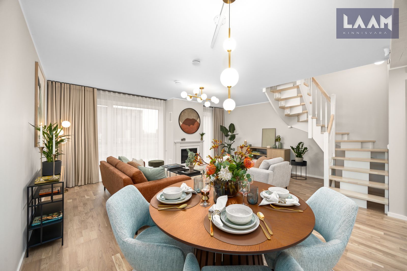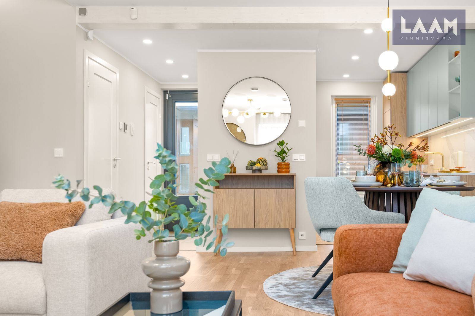 Ridaelamu kroonjuveeliks on esimesel korrusel asuv avar ja valgusküllane elutuba suurusega 36 m2. Privaatse nurgaga köögiala ( 5,9 m2) on ühendatud elutoaga.
