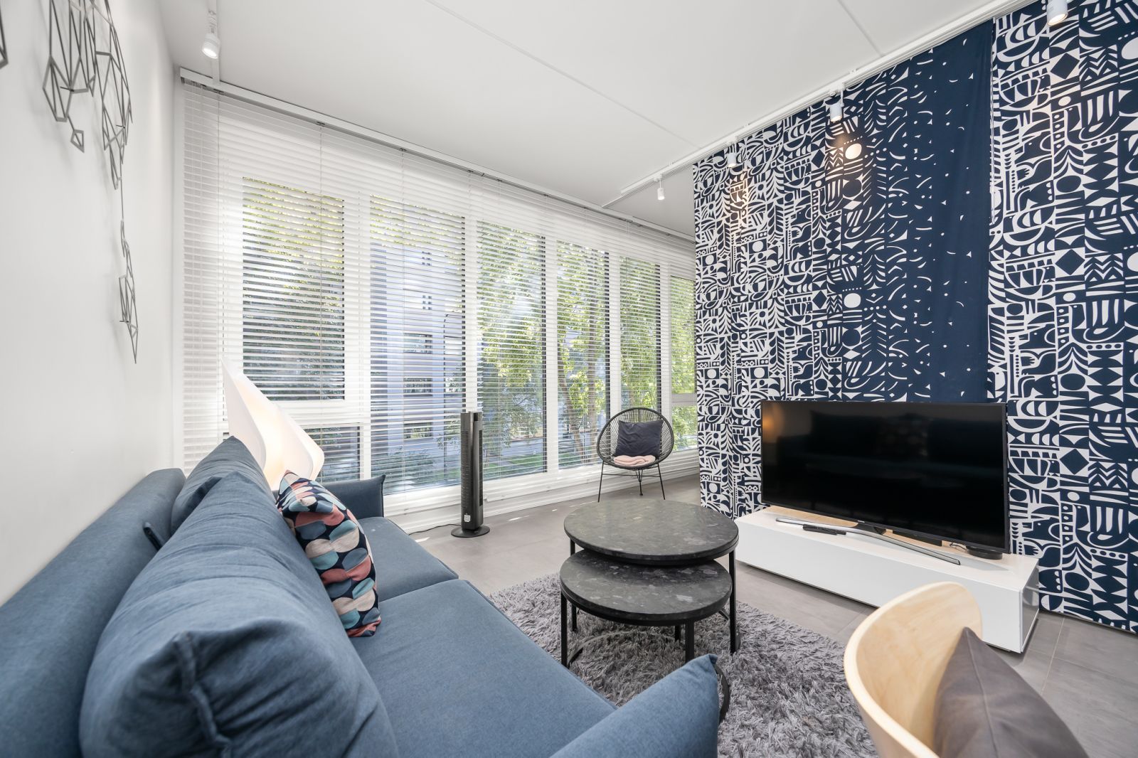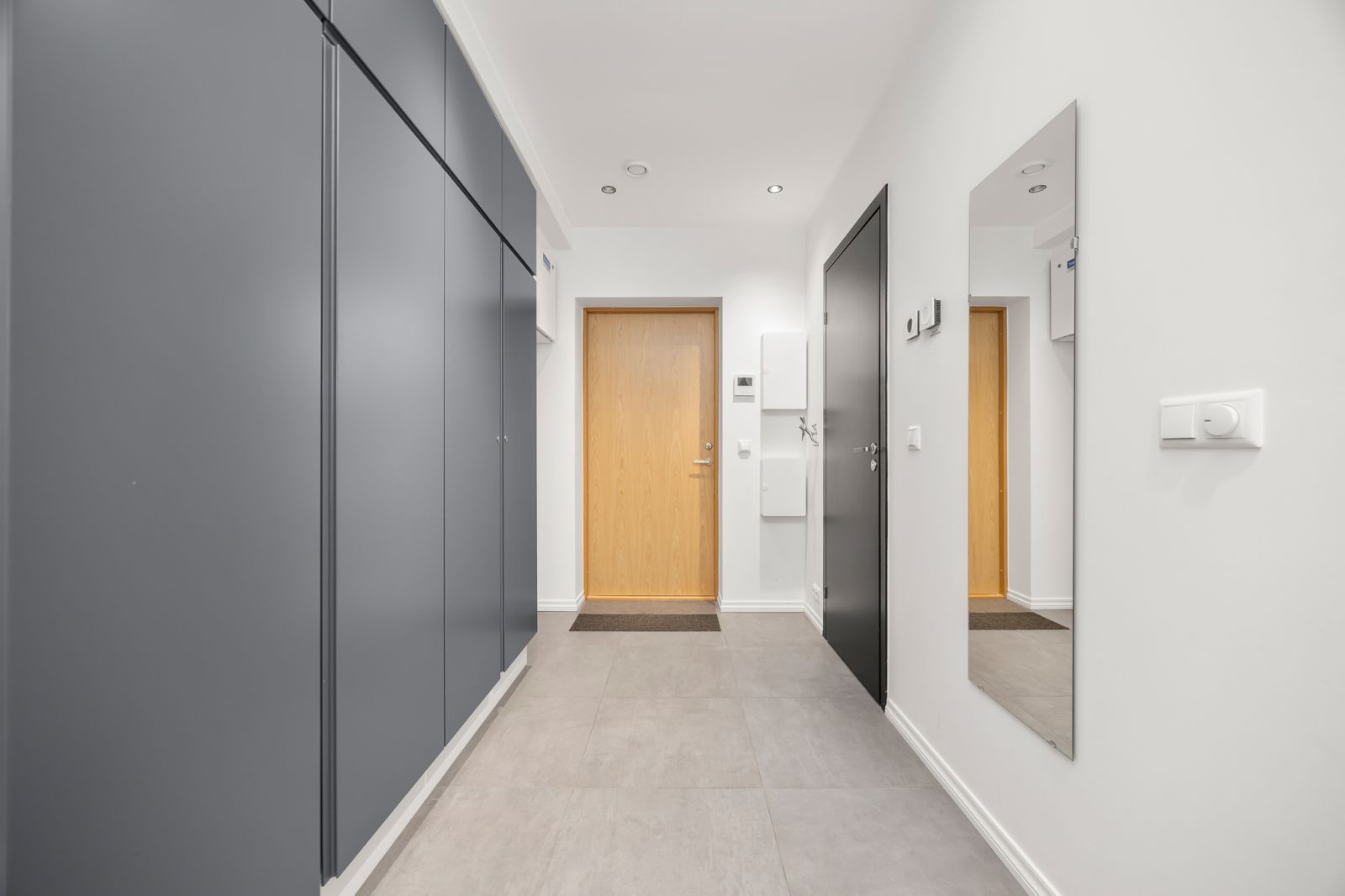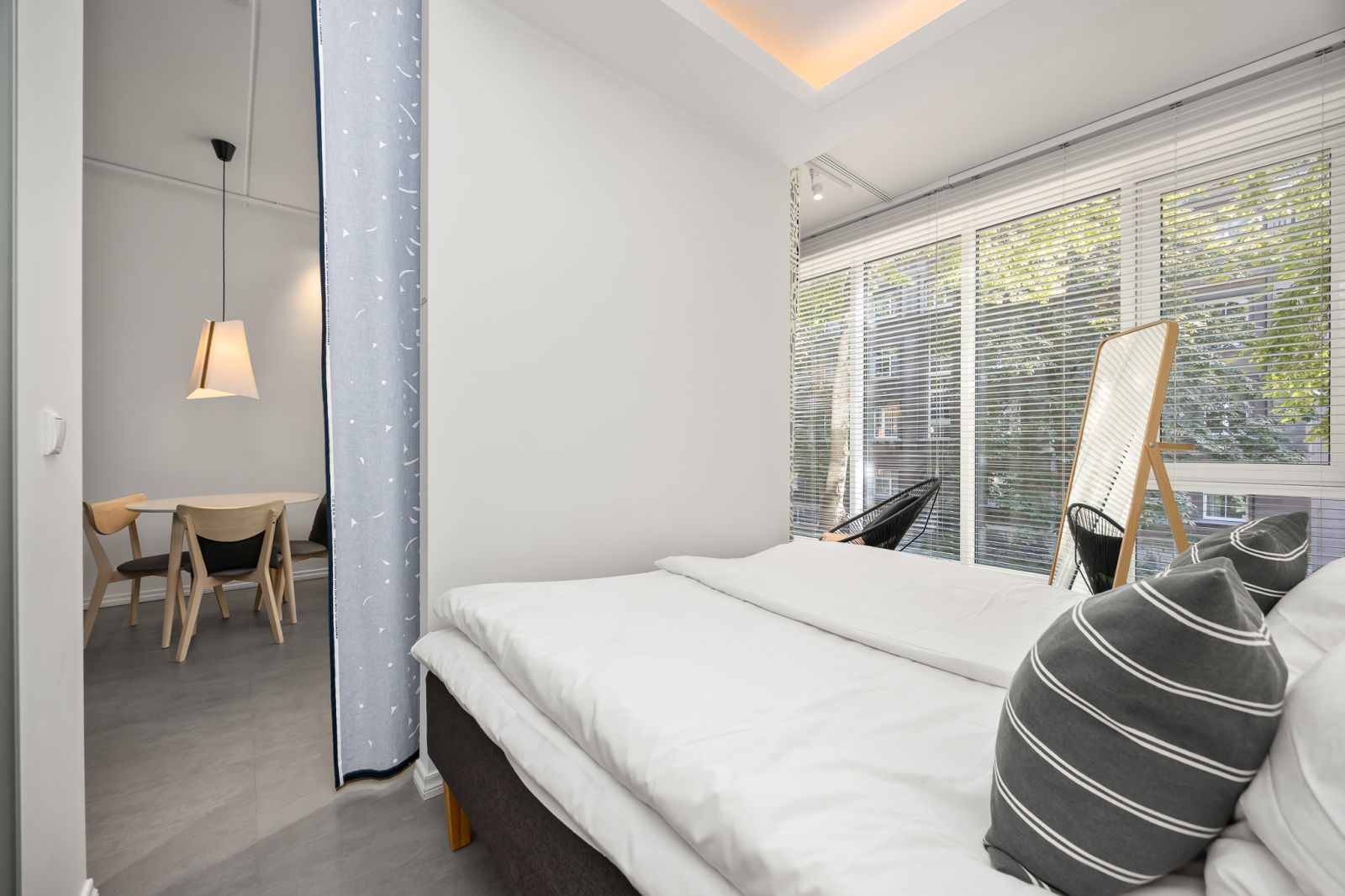 Korteri südameks on avar elutuba, mille kõrged laed (2,9 m) ja heledad toonid loovad õhulise ning elegantse atmosfääri. Interjöör on loodud sisearhitekti poolt, kes vastutas ka kogu hoone üldalade kujunduse eest, mistõttu on korteri sisearhitektuur terviklik ja läbimõeldud. Elutoas ja magamistoas on kasutatud kvaliteetseid eritellimusel valmistatud mööblilahendusi ja looduslikke materjale, mis rõhutavad põhjamaist stiili ja kestvat väärtust.