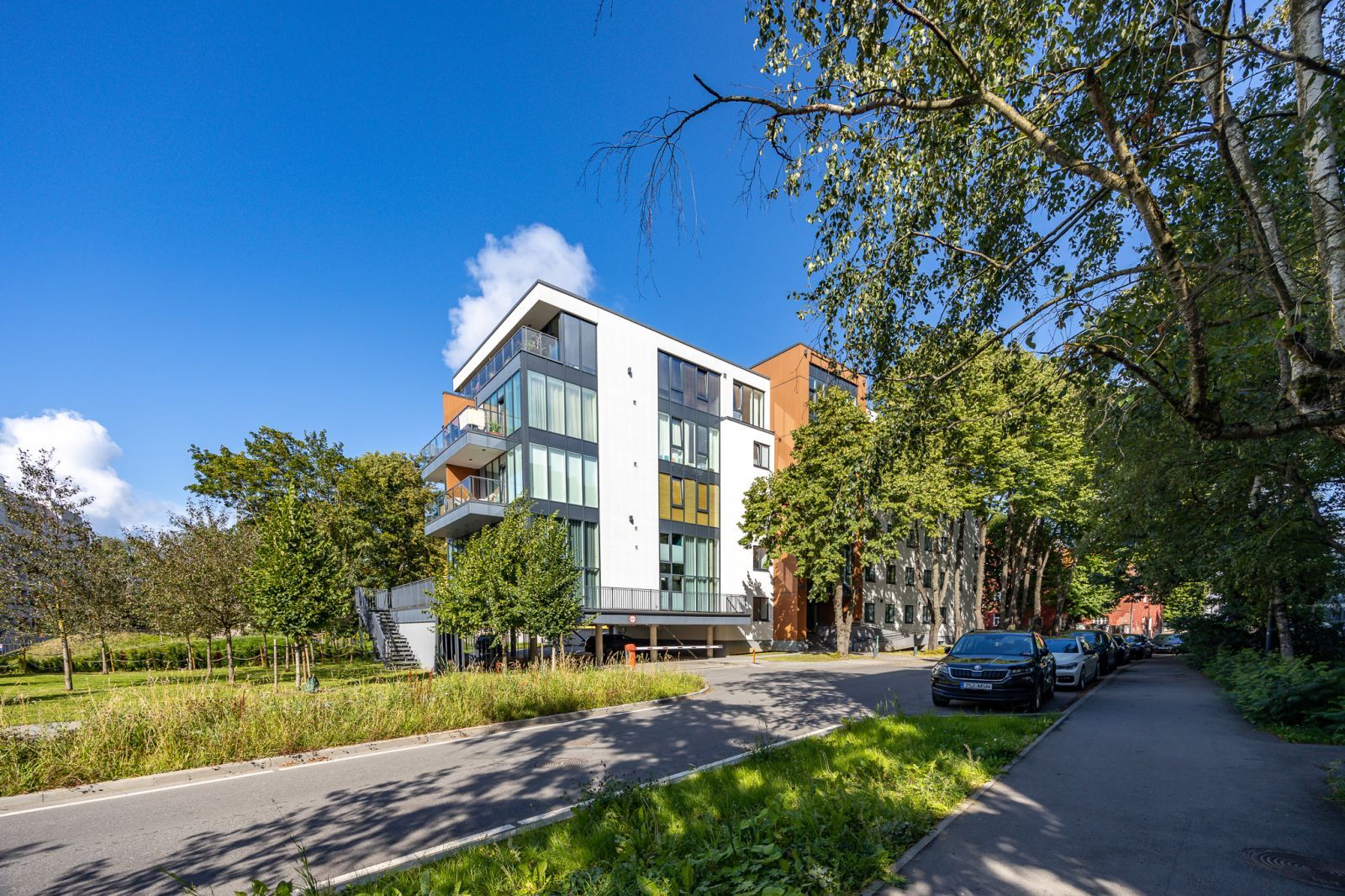 Teisel korrusel paiknev kahetoaline korter on pindalaga 42,7 m² ning lisaväärtusena kuulub hinna sisse 2,9 m² suurune lukustatud keldrikorruse panipaik. Korteri planeeringut iseloomustab nutikas ruumikasutus – magamisosa on visuaalselt eraldatud Marimekko disainkardinate ja eritellimusel valmistatud klaaspaneelidega, mis pakuvad privaatsust, säilitades samas valgusküllasuse ja avaruse. Põrandast laeni ulatuvad aknad avanevad Kotzebue rohealale, tuues interjööri loomuliku valguse ja rahuliku miljöö.